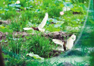 8 t5 V# u3 \7 y8 n/ U 池鹭、白鹭等水禽在秦岭北麓下的水塘追逐飞翔。 记者 李明 摄